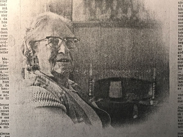 - 3 ganger har jeg kjørt gjennom isen med hest og kjerre i Vedavågen. Men alltid har det vært nær land for isen er svakest der. Utpå er den sterk. I den sammenheng kan jeg fortelle en historie fra Island som ingen har hørt før. - Vi skulle over en brei fjord på Island. Veien var stengt. På fjorden var det ikke is. Jeg hadde med meg en 18-års gutt og vi satt på hver vår hesterygg. Jeg var faktisk en “ridende jordmor”. For å komme over måtte jeg sitte i sadelen mens hesten svømte over. I tre kvarter satt jeg slik. Men da jeg var framme fikk jeg da i alle fall skiftet på meg tørre klær. Dette var i 1910.